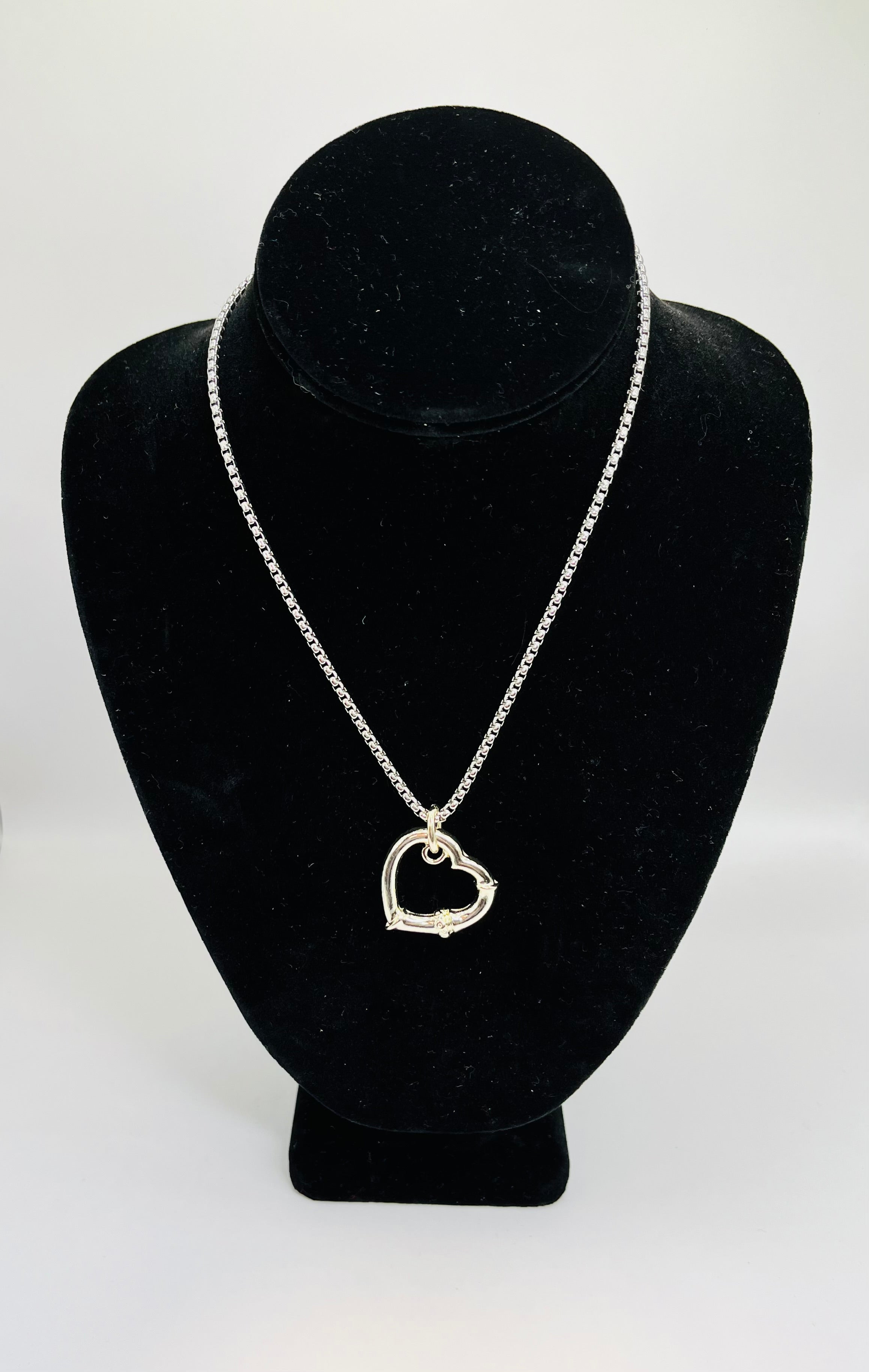 Fall in love with this stunning Mix Metal Heart Pendant Necklace! With its eye-catching mix of metals, this necklace is the perfect accessory to add a touch of elegance to any outfit. The unique heart pendant will make a statement and is sure to be a conversation starter. Don't miss out on this must-have piece!