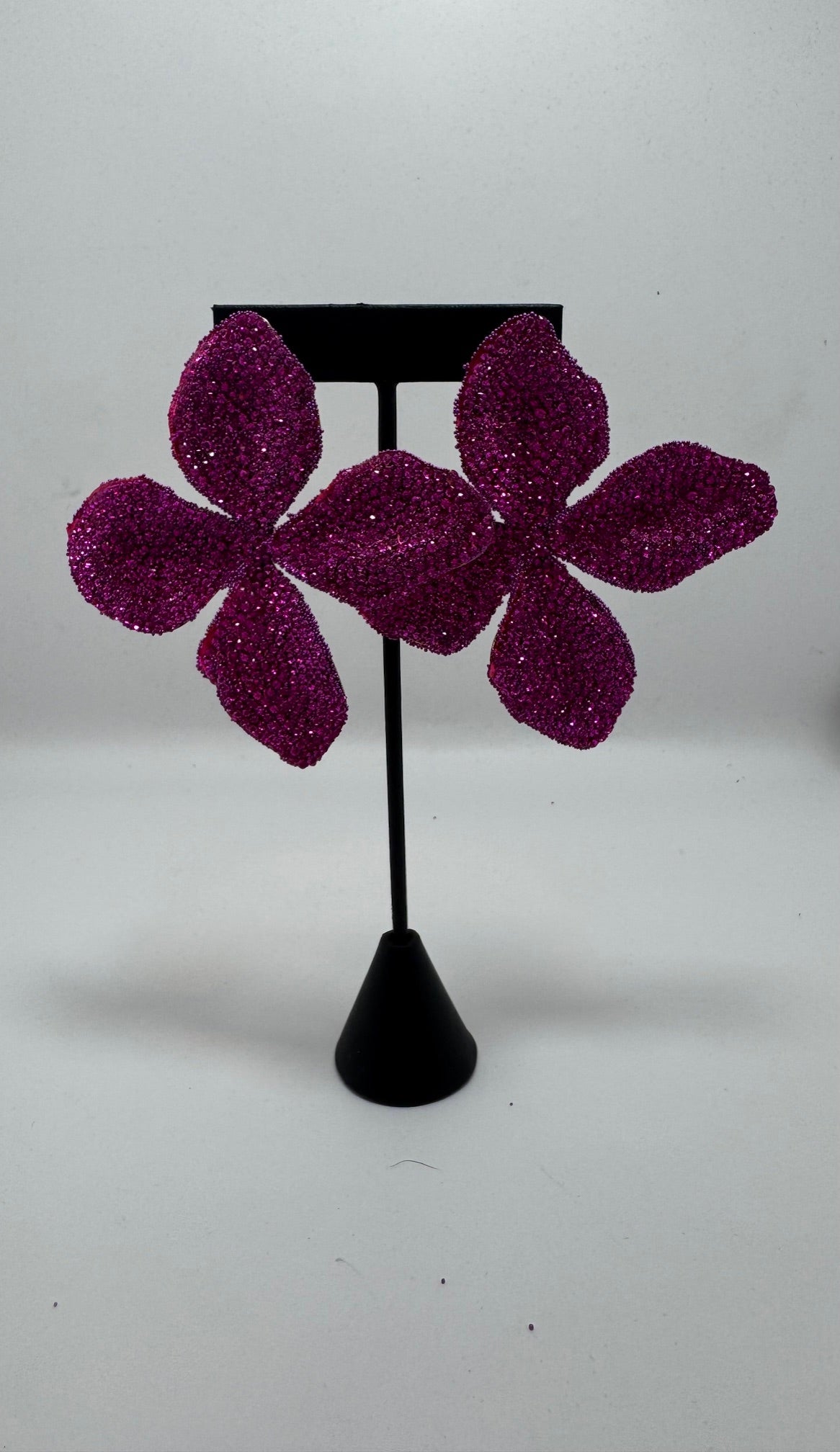 Add a touch of extravagance to your ensemble with these Oversize Hot Pink Rhinestone Earrings. The multi-dangly design exudes beauty and sophistication, while the rhinestones add a touch of sparkle. These statement earrings are lightweight at just 1.5g, on the scale 1-4. perfect for all-day wear. Elevate your style with these exquisite earrings.